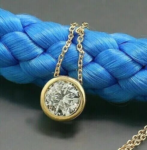 1.30Ct Round Simulated Diamond Solitaire Pendant 14K Gold Plated
