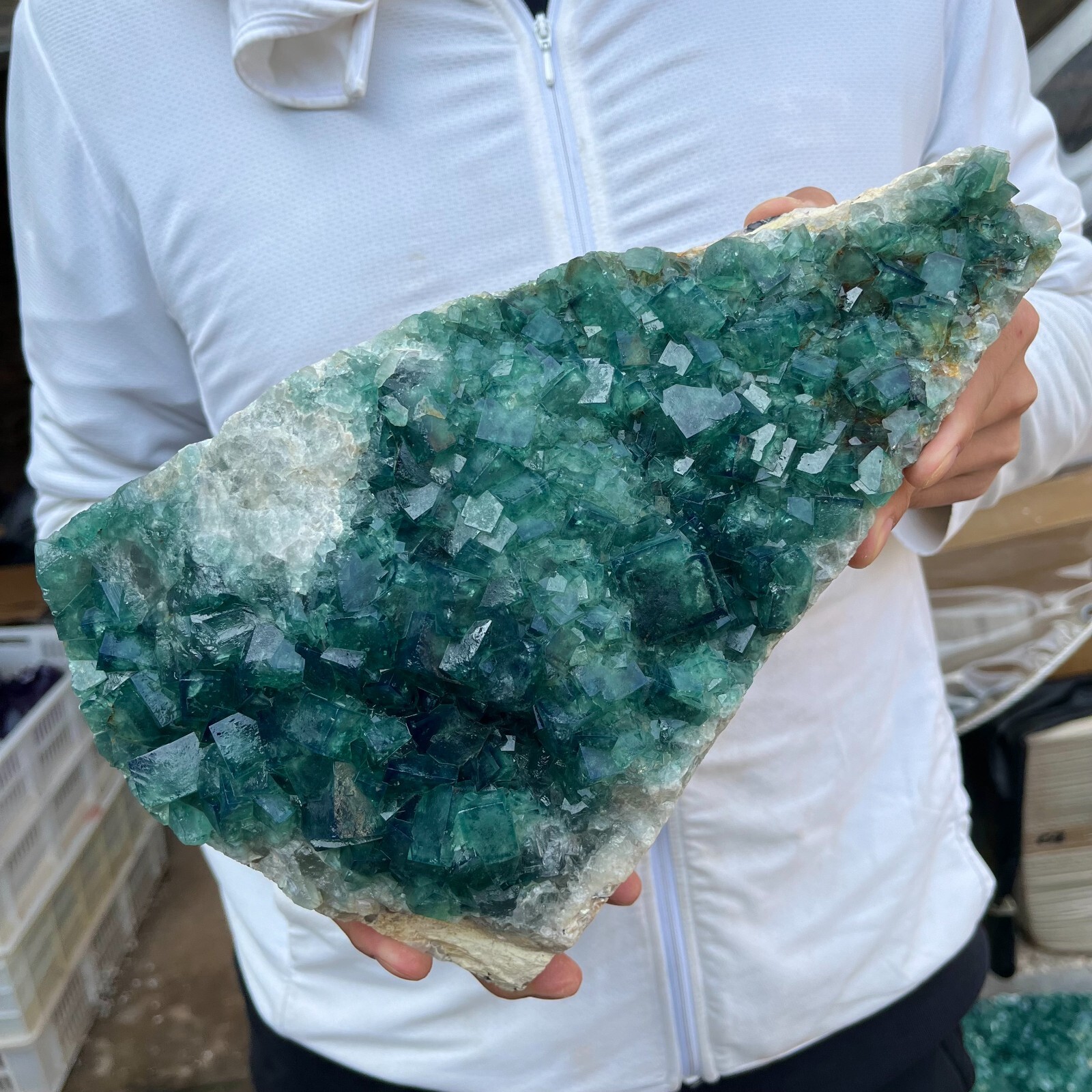 22.2lb Natural Green Fluorite Cube Crystal Cluster Mineral Specimen