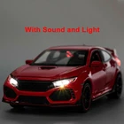 This Honda Civic Type R diecast model is amazing! The details are spot-on, and I love that the doors, hood, and trunk open. The light and sound effects add a fun touch, and the pull-back function makes it even more enjoyable. Perfect for collectors or as a gift—highly recommended!