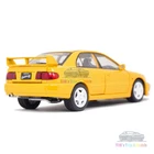Item Type Diecast Model Vehicle Scale 1:32 Material Metal, ABS and Rubber Dimension L5.4" * W2.2" * H1.8"/ L13.8 * W5.6 * H4.5 cm Color Yellow Vehicle Type Sports Car Specifics 1) Four doors can open 2) Engine cover can open 3) Front wheels can turn left and right 4) Trunk can open 5) Wheels have suspension effect 6) With sound and light effect by opening the front doors Power 3 x AG13/LR44 Button Cell, just for light and sound effect Packaging Packed in bubble wrap, WITHOUT original colour box Notice 1) Due to manual measurement, please allow a little error 2) Due to different monitors, the picture may not reflect the actual item 3) For the shipping security, we will remove the battery Package include 1 x Mitsubishi Lancer Evolution III Model Car ( Batteries Not Included )