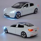 Product Description Item Type Diecast Model Vehicle Scale 1:32 Material Metal, ABS and Rubber Dimension 5.9" * 2.4" * 1.8"(15 * 6.2 *4.5 cm) Color Black, white, red and blue Vehicle Type Car/ Electric Vehicle Specifics 1) Pull Back 2) Four doors can open 3) Engine hood and trunk can open 4) With sound and light effect by pressing the car or opening the front doors Power 3 x AG13/LR44 Button Cell, just for light and sound effect Packaging Packed with bubble wrap, without original box Notice 1) Due to manual measurement, please allow a little error 2) Due to different monitors, the picture may not reflect the actual item 3) For the shipping security, we will remove the battery Package include 1 x Tesla Model 3 Model Car ( Batteries Not Included )
