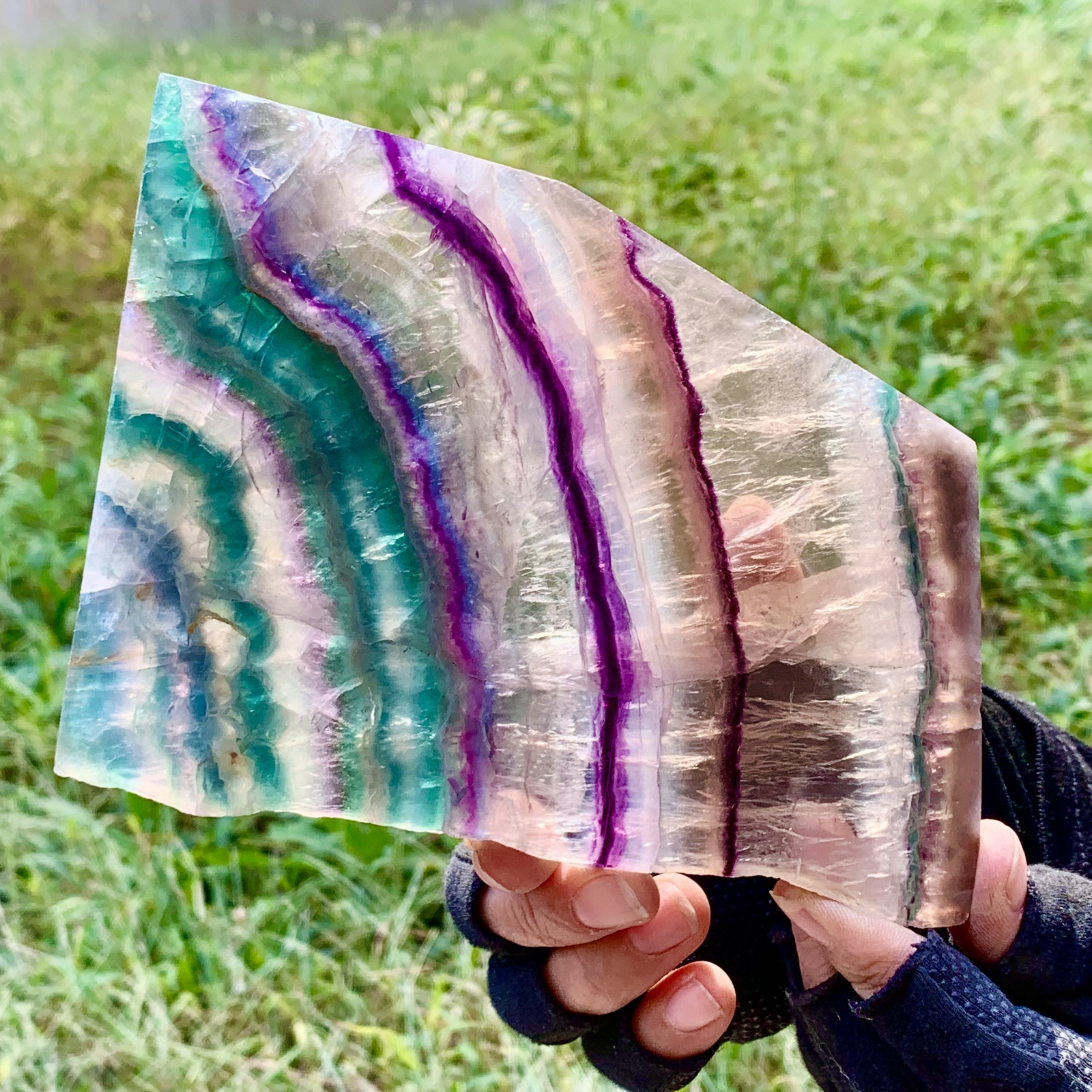 I am exceedingly happy with this purchase. This is a substantial piece with beautiful iridescence on all sides. I’m very happy with this purchase and it is well worth what I paid. As described and pictured, well packaged with timely shipping. I’ve done several purchases with this seller and would happily buy from them again.