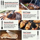 〔Premium Stainless Steel〕: Metal flat top grill is made of high quality 304 stainless steel ensure the griddle accessories compatible with Blackstone griddle, which is bpa free, durable, rust proof, you can use it with confidence. 〔Most Complete Set〕: Our 135 Pcs BBQ set is the most complete grill accessories set on the market, which can meet all your needs. It includes spatula, slotted spatula, basting cover, grill tongs, grill fork, meat knife, basting brush, fish turner, chopper, scraper, 2 sauce dispenser(16oz), 4 egg rings, 2 spice shaker, Scissors, silicone gloves, meat thermometer, meat injector, 100pcs bamboo skewers,apron, cleaning Brush, storage bag, 10 hooks. 〔The Necessary Tools〕: Spatulas, scraper, and oil bottles are necessary griddle tools for any serious griddle chef. Long Griddle Spatula can move large amounts of food quickly and accurately. Chopper/scraper to dice food and scrape griddles clean. It will please everyone at your BBQ, weekend party or your everyday meals. 〔The Extra Tools〕: Egg Ring can shape your eggs in round and heart shape that is more delicate; 12 inches casting cover helps to reduce cooking time and splatter; Fork has sharp tail helps to fork any stuff with minimal effort; Fish Turner not only solid but also thin and flexible so you can get under the delicate food like fish without destroying it. 〔Perfect Gift Choice〕 : Beautifully designed gift box quality packaging, which is ideal gift choice for Fathers Day, Thanksgiving or Christmas. We stand by our Griddle Accessories Kit with our outstanding customer service, if you ever have a problem, just contact us for a replacement. Product Description 135 PIECES GRIDDLE ACCESSORIES We created a complete set of Flat Top Grill Accessories that lets you build beautiful burgers, succulent steak, perfect pancakes and amazing cuisines from start to finish! Take a break on your garden from your busy life with our professional griddle BBQ tool set. Ideal Gift for Family & Friend Ideal grill tool kit makes the perfect gift set for Family or for friends or simply get yourself. Our griddle spatula set is ideal gift choice for Birthday, Valentine's Day, Fathers Day, and Christmas Day. 135 PCS Complete Set Heat Resistant Dishwasher Safe Food Grade Stainless Steel Perfect Gift Choice Rust-Proof & Durable Different Spatula Set: multi-purpose grill spatulas meet all your BBQ Grilling needs. Different Spatula Set: multi-purpose grill spatulas meet all your BBQ Grilling needs. Professional Grade Stainless Steel: Thicker stainless steel with solid construction & thick blade. Ergonomic Handle Design: Helps you comfortably non-slip to use it, and with the hanging hold for easy storage. Easy to Carry with the Bag It comes with a custom canvas bag to store them in which is great so they can be kept with the grill and not jammed in your kitchen utensil drawer which is already full. The bag is much convenient for you to carry when you have a picnic or camping. Dishwasher Safe All tools are made of food grade stainless steel, they are easy to clean, and also can be put into the dishwasher, which is safe and healthy, and this will saving your time. Hanging Holes All tools are designed with hanging holes, these holes are big enough to be easily hung beside your griddle, also suitable for kitchen, it will be faster and more convenient to use. Kitchen Apron for Men/Women Made from Premium Polyester, machine washable, breathable. very soft and comfortable to wear. Covers the entire front so that you won’t get dirty or messy while cooking;