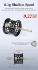 Dark Wolf Ultra ,weight Only 135g. Shallow spool only 6.1g. New model designed for more thinner diameter lines Super strong Integrated CARBON frame and side plate Ultra-light design for easier casting High-strength aluminum alloy precision main gear Ceramics cone shape line guide for increase casting distance 6-pin 30-position adjustable magnetic brake system Audible clicking star drag and micro tension knob Automatic sound system for fish bite Lightweight carbon handle Carbon drag system, to provide smooth, long-lasting operation 10+1 precision bearing system Hard material short-axis aluminium shallow spool
