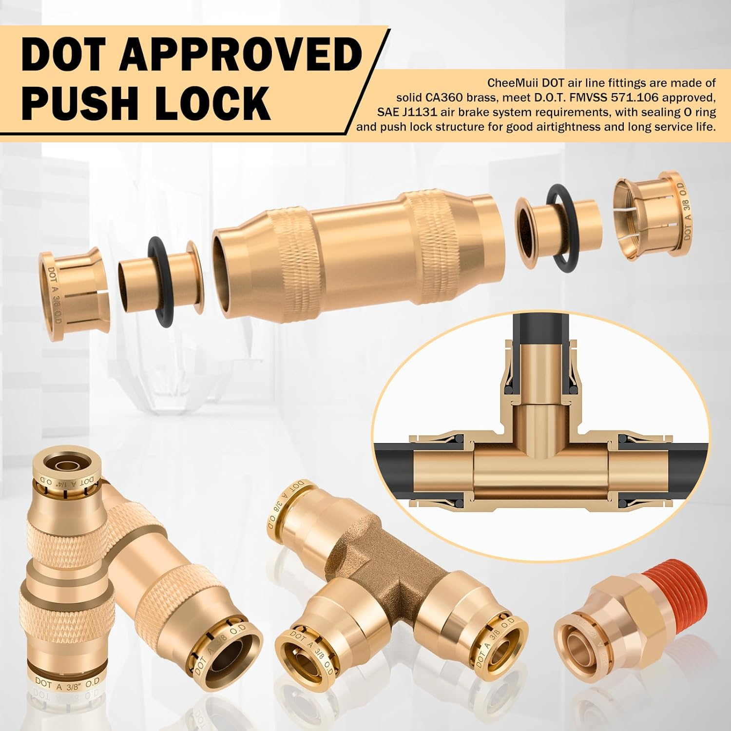 Store New Arrivals Add to Favorite View Feedback Contact 136 PCS Brass DOT Air Line Fittings Kit Push Lock DOT Air Fittings Push to Connect Fittings 1/8" 1/4" 3/8" 1/2" Quick Connect Air Hose Fittings Assortment for Air Line Air Hose Description Item model number 136 PCS DOT AIR FITTINGS Item Package Quantity 1 Item dimensions L x W x H 10.6 x 7.09 x 3.7 inches Size 5/32", 1/8", 1/4", 3/8", 1/2" Number of Pieces 136 Color Gold Set Name 136 PCS DOT AIR LINE FITTINGS KIT Material Brass Connector Type Union Item Weight 3.75 Kilograms Thread Type NPT Batteries Required? No Batteries Included? No Exterior Finish Brass Product Dimensions 10.6 x 7.09 x 3.7 inches Included Components 1 PC PIPE CUTTER, 1 PC TEFLON TAPE, 134 PCS BRASS DOT AIR LINE FITTINGS 136 PCS PACKAGE: The 136 pcs DOT air line fittings assortment includes: 12 pcs DOT brass tee fittings, 34 pcs DOT brass straight unions, 36 pcs DOT brass straight push & NPT air fittings, 18 pcs DOT brass 90°elbows push & NPT air fittings, 12 pcs DOT brass 360° swivel elbows push & NPT air fittings, 12 pcs brass bushings, 6 pcs brass couplings, 4 pcs brass 1/4" inflation Schrader valve, 1 pc tube cutter, 1 pc Teflon tape. Air brake line fittings types: 5/32" 1/8", 1/4", 3/8", 1/2" PREMIUM DOT FITTINGS: CheeMuii brass DOT air fittings are made of CA360 pure brass, meet D.O.T. FMVSS 571.106 approved, SAE J1131 air brake system requirements, with corrosion resistance, high-temperature ductility, low permeability and long service life MAX WORKING INTENSITY: The DOT brass push lock air fittings can be operated in pressures from vacuum to 800 PSI and in temperatures from -40°F to +248°F (-40°C to +120°C). Note: see the tubing manufacturer's recommendations for pressure and temperature mutations AIR SUSPENSION VALVE: CheeMuii 1/4" DOT inflation Schrader valves are made of CA360 pure brass, which is durable and corrosion-resistant. Thread length: 3/4". Provide a manual inflation point to air spring suspension bags. Each expansion valve is equipped with a protective cap to prevent dirt and mud EASY INSTALLATION: The quick connect design and precise NPT threading make installation of air brake accessories easy, just push to connect. And there is pre-applied sealant on NPT male thread for better sealing Product description CheeMuii 136 Pcs Brass DOT Air Line Fittings Assortment Product Specification: 12 PCS Brass DOT Tee Fittings 34 PCS Brass DOT Straight Unions 36 PCS Brass DOT Straight Push & NPT Fittings 18 PCS Brass DOT Elbows Push & NPT Fittings 12 PCS Brass DOT 360° Swivel Elbows Push & NPT Fittings 4 PCS Brass DOT 1/4" Inflation Schrader Valve 12 PCS Brass Bushings 6 PCS Brass Couplings 1 PC Tube Cutter & 1 PC Teflon Tape 360° FREE ROTATION CheeMuii DOT brass quick connect fittings Can be rotated 360 degrees for easy installation, there will be no air leakage after being connected, and it has a good performance at work. DOT PUSH-IN CheeMuii DOT push lock air fittings meet D.O.T. FMVSS 571.106, SAE J1131 air brake system requirements. Effectively prevent leakage and have a long service life. NO LEAKAGE Precision NPT thread and pre-applied sealing coating, effectively prevent leakage PREMIUM BRASS METERIAL CheeMuii DOT air hose fittings are made of high-quality CA360 pure brass, meet D.O.T. FMVSS 571.106 approved, SAE J1131 air brake system requirements, with corrosion resistance, high-temperature ductility, low permeability and long service life. TEMPERATURE RANGE CheeMuii brass DOT air fittings can adapt to temperature differences in different areas, can withstand high and low temperatures, long service life. Temperature Range: -40°F to +248°F | -40°C to +120°C. MAX WORKING PRESSURE CheeMuii brass DOT air line fittings have high impact and wear resistance, can withstand higher working pressure, and have a longer service life. The air line fittings' max working pressure is 800 PSI. ABOUT US We offer the best prices around on high quality products. Our E-store includes media such as books, movies, music and games while offering electronics, toys, sporting apparel, clothing, tools, general home, garden items and more. SHIPPING We are always working hard to ensure your package arrives as soon as possible. Please understand that some factors like weather, high postal traffic, and the performance of shipping companies are outside of our control. We offer free shipping to the lower 48 states and ship within 2 business days of payment, usually sooner. We do not accept P.O. Boxes. Please provide a physical address. For shipping outside of the continental USA, we only use eBay's Global Shipping Program.The item is shipped to KY and then sent to the rest of the world. International customers are responsible for all duties and taxes. Continue to check out in order to calculate costs for shipping the item to your country. Messages regarding eBay's Global Shipping Program MUST be directed at eBay EXCLUSIVELY. RETURNS We offer a 30-Day Return Policy on items which you are not completely satisfied with. You have the option for a full-refund or an exchange of the item. No returns are available on items shipped outside of the USA. PAYMENT We accept PayPal. CONTACT US This page content is yet to come Please ad us to your favorite seller and visit again later Thank You CUSTOMER SATISFACTION We try our very best to make sure every customer is completely satisfied. If there's a problem, message us! We're happy to help. WE ACCEPT Copyright © 2021 AutoDS. | All Rights Reserved