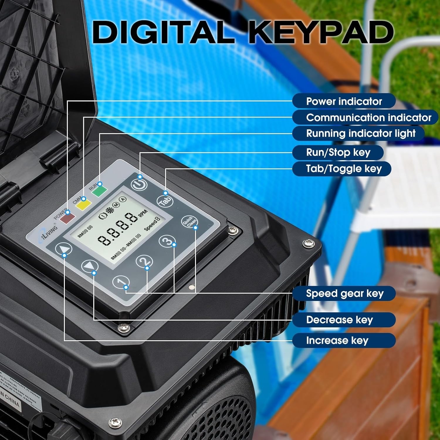 π iLiving ILG8PP130-VS Variable Speed Pool Pump | 1.3 HP Why this pump Built for people who want control, efficiency, and flexibility π§ This is not a basic on/off pump - you can fine-tune speed, flow, and energy use depending on how your pool actually runs. Key advantages β’ βοΈ Variable speed control (450β3450 RPM) β dial in exactly what your pool needs β’ π‘ Energy-saving V/F motor β lower speeds = lower power bills β’ π Auto or Manual modes β set it once or control it yourself β’ π₯οΈ Touch panel or physical buttons β simple, no overcomplicated menus β’ π Rotatable control panel β easier installation in tight spaces Performance details β’ π¦ Flow rate up to 330 L/min β’ π Works with in-ground & above-ground pools β’ β‘ 230V electric power β’ π§ Factory auto presets : β Speed 1: 3000 RPM β Speed 2: 1400 RPM β Speed 3: 2200 RPM (fully adjustable anytime) Build & durability β’ π οΈ Reinforced plastics + aluminum alloy housing β’ π‘οΈ Designed for long, continuous operation β’ π External control support (keyboard or RS485, selectable) Quick specs β’ Power: 1.3 HP β’ Voltage: 230V β’ Material: Reinforced plastic + aluminum β’ Color: Black β’ Model: ILG8PP130-VS π Fast shipping βοΈ Real variable speed control βοΈ Energy-efficient upgrade over single-speed pumps βοΈ Good option if you want flexibility without jumping to ultra-expensive systems Straightforward, adjustable, and built for users who want control instead of presets only.