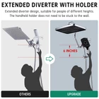 DUAL SHOWER COMBO: With the large 13-inch rainfall shower head, the water flow can cover your whole body quickly, so you can enjoy the shower. The two shower heads are made of durable ABS material. UNIQUE METAL EXTENDED DIVERTER WITH HOLDER: The unique metal extended diverter switch allows you to adjust the mode without having to lift your arm hard. The handheld shower holder does not need to be glued to the wall, it is convenient to reach the handheld device. 13 INCH CURVED ADJUSTABLE SHOWER ARM: The 13-inch curved adjustable shower arm can be adjusted in height and angle. The curved shower arm is designed to leave more room for the rainfall shower head, which can be adjusted at a greater angle without colliding with the shower arm.The extended shower arm remains perpendicular to the ground when raised to its highest position. 4 MODES HANDHELD SHOWER HEAD AND LONG HOSE: 3 shower modes and a power wash mode at the top of the shower. Push-button on/off mode allows you to easily switch between modes. The hose can be stretched from 60 to 65 inches. The wash mode and long hose make it simple to clean every corner of your bathroom, cleaning toilets and tubs quickly and efficiently. Using a handheld shower makes it more convenient for babies and pets to clean. EASY INSTALLATION AND THREE YEAR AFTER-SALES SERVICE: Simply follow the instructions and install in minutes, everything you need is included in the package. If you have any questions about this product, please send us an email and we will respond as soon as possible.