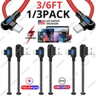 Features: 90 Degree Charging Cable: 6ft long is ideal for the long distance usage at home, in your office, car ,on your travel and more places. 2A FAST CHARGE: Reinforced with Aramid Fiber and 3.8mm Wire Diameter Copper Wire Making Charging Cable Much Faster and Stronger than Conventional Charging Cables with Thin Power Wire. SUPERIOR DURABILITY: 90 degree Cable Nylon-braided Cord with Aluminum Casing has a ultra-high 5000+ bend lifespan. Won't Splitting or Breaking Easily. The LED indicator 90 degree angle design, charging and playing at the same time. Ensures complete charge and sync Premium Quality Made up of premium quality material. Cable made up Copper wire covered with Nylon Braided Jacket for superior durability and protection of the wire. Specification: Color: Black/Red Current: 2A Length:3ft/6ft Material:Nylon Braided Design: with LED indicator, 90° Double Elbow Maximum charging current : 2A Function: Charging+Data transmission Products include: 3ft 3x cables/6ft 3x cables/3ft 1x cables/6ft 1x cables (There are two colors of black and red, according to your choice, send the item) COMPATIBLE MODELS: Type-C Cable Compatible with Most USB Type-C devices such as: For Samsung Galaxy S20/S20+/Z Flip /X cover Pro/Note10 Lite/S10 Lite/S10/S10 plus/S9/S9 plus/S8 plus/S8/S8 Active/S20/Samsung Galaxy Note 10/Note 9/Note 8/Samsung Galaxy C9 Pro/C7 Pro/C5 Pro/Samsung Galaxy A10e/A20e/A7/A50/A3/ For Google Pixel 4/Pixel 4XL/Pixel 3/Pixel 3xl/Pixel 2/Pixel 2 XL/Google Pixel/Pixel XL/Pixel C/Google Nexus 5X/ 6P/ For LG G7 thinq/LG G6/LG G5 /LG G5 SE / V30/LG V20/LG Q8/LG V40/LG G8 For HTC U11/Ultra/U Play/HTC 10; OnePlus 5T/5/3T/3 For Nintendo Switch; For Go Pro Hero 5/Hero 6/Hero 7 For Sony Xperia XZ Premium/L1/XA1 Ultra/XA1/XZs/XZ/X Compact For Moto Z2 Force/Moto Z2 Play/Moto Z/ Moto Z Force For Microsoft Lumia 950 / 950 XL For Huawei P4D PRO/P30 PRO/MATE30 PRO/MATE20 PRO/P20 PRO/P30/MATE20X/MATE30/MATE20