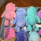 Hello! My son went through a Care Bear phase. We got him these for different small holidays…or the tooth fairy brought them or we gave them as rewards for jobs well done. He no longer ‘cares’ about them 😭 and asked if I would try to sell them so he could help earn money for vacation NEXT year (oh my heart!). (We have to save and save to take vacations and I’m determined to take a nice one next year. There was no vacay this year 😢) I have just washed these and dried on low heat. I do not see any visible stains (or invisible stains, for that matter 😂) and I don’t see any rips or tears. To me, they are good as new (but I don’t have the boxes). Thank you so much!😊 Jodi