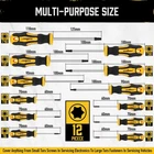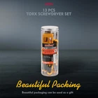 Made of premium materials Chromium molybdenum vanadium steel, which is stronger than most carbon steels; After chrome plating, it is corrosion-resistant and beautiful. Made of premium materials Chromium molybdenum vanadium steel, which is stronger than most carbon steels; After chrome plating, it is corrosion-resistant and beautiful. Strong magnetic head, it is easy to attract screws with magnetic head, and it is easy to take out screws after disassembly. Blackening treatment helps to effectively prevent rust. Set Includes: T5 x2-1/2", T6 x2-1/2", T7 x 2-1/2", T8 x 2-1/2", T9 x 2-1/2", T10 x 2-1/2", T15 x 4", T20 x 4", T25 x 4", T27 x 4", T30 x 4", T40 x 5"and a magnetic retriever . Ergonomic non slip and soft handle, made of PP + TPR, allows you to maintain effective use while providing good comfort. Magnetizer demagnetizer tool, Instantly magnetize or demagnetize steel tools and other small ferrous parts, Converts any tool blade to a magnetic retriever of screws, nuts and metallic particles.