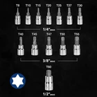 PREMIUM MATERIAL - Bits of torx socket set are made of high-strength S2 steel, which makes the heads impact-resistant, wear-resistant, rust-proof, and extremely durable. CR-V material sockets meet ANSI standards and provide higher hardness and more powerful torque. CONVENIENT & PORTABLE – All the bit sockets are stored in a sturdy case for easy access and storage. The toolset is also suitable as a unique and practical gift for Father's Day, Birthday, Christmas, Thanksgiving, and Valentine's Day gifts for men like dad, son, or husband. EASY TO IDENTIFY – Both bit and socket size information are engraved on the surface of the product for easy and quick identification and use. WIDE APPLICATION – WORKPRO torx bit set includes all the essential sizes to work on bikes, automobiles, appliances, lawn equipment, machinery, and any other jobs to use with manual torque tools. PACKAGING & SERVICE - 13-Pieces torx bit socket set contains: 7PC 1/4" Dr. bit sockets (T8, T10, T15, T20, T25, T27, T30); 5PC 3/8" Dr. bit sockets (T40, T45, T47, T50, T55) and 1PC 1/2" Dr. bit sockets(T60). We provide a full lifetime warranty for this product and if there is any product problem, please feel free to contact us. Product Description The video showcases the product in use. The video guides you through product setup. The video compares multiple products. The video shows the product being unpacked.