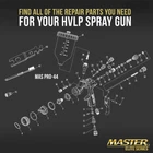 TCP Global Ebay Storefront Ordering | Shipping | Returns | International Product Information Part# MAS PRO-NN-13 1.3 mm Needle, Fluid Nozzle and Air Cap Set Only - Fits a PRO-44 High Performance HVLP Spray Gun Master Elite Series PRO-44 1.3 mm Needle, Fluid Nozzle and Air Cap Set only. This 1.3 mm Atomizing Set fits the Master Elite Series PRO-44 High Performance HVLP Spray Gun. The 1.3 mm fluid tip set up is ideal for use with base coats, clear coats, single stage, primers and other light to medium viscosity paint coating materials. Master Elite Series spray guns are designed with the professional painter in mind. All gun components are made with exacting precision, so they provide the premium performance with all types automotive, industrial, and woodworking coatings. Achieve perfect performance with all paint coatings because of the innovative technology in this spray guns needle, nozzle and air cap system. Paint coatings are fully atomized with the ideal fan pattern, so that they lay down perfectly for a clean even basecoat or topcoat finish. Precision engineered high grade stainless steel components that are 100% suitable for the latest automotive waterborne paint coatings. Master Elite Series PRO-44 1.3 mm Needle, Fluid Nozzle and Air Cap Set only. This 1.3 mm Atomizing Set fits the Master Elite Series PRO-44 High Performance HVLP Spray Gun. The 1.3 mm fluid tip set up is ideal for use with base coats, clear coats, single stage, primers and other light to medium viscosity paint coating materials. Master Elite Series spray guns are designed with the professional painter in mind. All gun components are made with exacting precision, so they provide the premium performance with all types automotive, industrial, and woodworking coatings. Achieve perfect performance with all paint coatings because of the innovative technology in this spray guns needle, nozzle and air cap system. Paint coatings are fully atomized with the ideal fan pattern, so that they lay down perfectly for a clean even basecoat or topcoat finish. Precision engineered high grade stainless steel components that are 100% suitable for the latest automotive waterborne paint coatings. View all categories Warehouse Locations Las Vegas, Nevada South Carolina