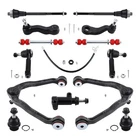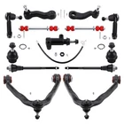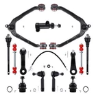 Application: FOR CADILLAC ESCALADE 2002 - 2006 All Models FOR CADILLAC ESCALADE ESV 2003 - 2006 All Models FOR CADILLAC ESCALADE EXT 2002 - 2006 All Models FOR CHEVROLET AVALANCHE 1500 2002 - 2006 All Models FOR CHEVROLET SILVERADO 1500 1999 - 2006 4WD/AWD FOR CHEVROLET SUBURBAN 1500 2000 - 2006 All Models FOR CHEVROLET TAHOE 2000 - 2006 2000: 4.8L & 5.3L V8 Engines ONLY FOR GMC SIERRA 1500 1999 - 2006 4WD/AWD FOR GMC YUKON 2000 - 2006 2000: 4.8L & 5.3L V8 Engines ONLY FOR GMC YUKON XL 1500 2000 - 2006 All Models Package Includes: 2x Front Upper Control Arms w/ Ball Joints - K80942PU 2x Front Lower Ball Joints - K6541 [Fits Steel Control Arms Only] 2x Front Sway Bar Links - K80631PU (K6428=K80631=K8987) 2x Front Outer Tie Rods - ES3493T 2x Front Inner Tie Rods - ES3488 1x Pitman Arm [With 4 Grooves] - K6536 1x Front Steering Idler Arm - K6534 1x Front Idler Bracket Pivot - K6659 [interchange # K6723] Feature: 1. Polyurethane Bushings 2. Harder and durable because they are made of machined steel alloy and painted with industrial powder coating 3. Eliminates tire wear while improving stability 4. Improves Rear Suspension, Handling, Predictable Response, and even Prevents Premature Tire Wear 5. Designed for Street, Track, and Drift Application. Long Service Life 6. Corrects geometry for proper alignment and improved handling. Note: ♦ Please feel free to contact us for whatever we can help via eBay message. ♦ Professional installation is highly recommended. MXR04FXJT