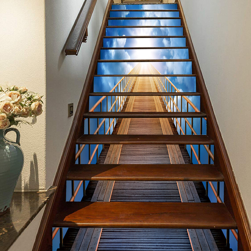 13pcs 3D Self-Adhesive Stair Riser Decals for Floors and Walls Home Decor