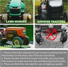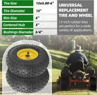 13x5.00-6 Tire and Wheel Assembly (2-Pack), Tubeless Lawn Mower Tire with Rim, with 3/4” Bushings and 3” Centered Hub Length 13x5.00-6 TUBELESS TIRE AND WHEEL: 13 inches tire diameter, 5 inches tire width, 6 inches rim diameter, and 4.9 inches section width. Bushing size (axle diameter is 3/4 inch with a 3 inches centered hub UNIVERSAL RIDING LAWN MOWER TIRE: 13x5.00-6 lawn mower tires are also suitable for riding mowers, lawn wagons, yard tractors, and wheelbarrows. Also used on select brands/models of hand trucks and trolleys. (Not Fit Z245, Z355R Mower) HIGH LOAD CAPACITY 13X5.00-6 TIRE AND WHEEL: This 2-ply tire has a load index of 39 with a max weight capacity of 300 lbs per tire. Max inflation is 30 PSI. Not for highway service (NHS) tire 13x5.00-6 TIRE PACK INCLUDES: 2 piece 13x5.00-6 lawn mower tire pre-mounted on a 6-inch rim. The tubeless 13x5.00-6 tire is also packed pre-inflated NOTE ON COMPATIBILITY: To ensure a proper-fitting replacement tire and wheel, double-check the following parameters: tire size, hub length, hub position (should be centered), and bushing diameter