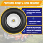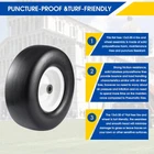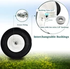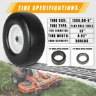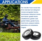 About this item Compatible with:Most zero-turn lawn mowers and garden tractors. Wheelbarrows, garden carts, hand trucks, generators, air compressors, wagons, pressure washers and other types of outdoor power equipment. Specification:tire diameter: 13"丨tire width: 4.6"丨rim diameter: 6"丨bushing/borehole size: 3/4" & 5/8"丨centered hub length: 3.25"丨maximum load capacity: 500 lbs High Quality:Made of solid polyurethane foam, puncture-proof, durable and long-lasting. Seamless, smooth tread will pamper your lawn; load-carrying characteristics are similar to pneumatic tires, with the bounce and feel of pneumatic tires, but without the punctures. Note:Our tires are not compatible with the 13x6.50-6 model. Do not use on highways, it will affect the appearance of the tire but not the use. Tires will develop flat spots if parked for a long period of time, but they will repair themselves during use.