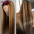 Highlight Wig Human Hair Ombre Honey Blonde Hd Lace Front Wigs For Women Brazilian 13x4 30 Inch Bone Straight Full Frontal Wig all for 1 real and free shipping