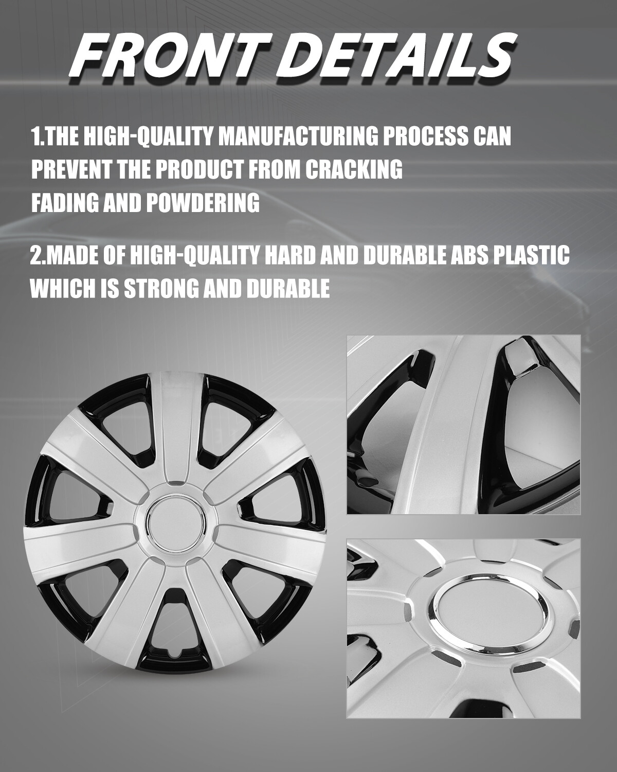 Store Categories Other Car Refrigerator Front Bumper Rear Bumper Fender Flares Inner Fenders Side Steps Running Board A-Pillar Light Mount Brackets Headlights Taillights Fog Lights LED Headlights LED Taillights LED Fog Lights Jeep Chevrolet Ford Toyota Dodge GMC Product Features ⭐ PERFECT FIT: This wheel hub cap is specifically designed to perfectly fit for 14-inch wheels, ensuring a seamless match and enhanced aesthetics. It complements the overall design of the vehicle, elevating its visual appeal. ⭐ HIGH-QUALITY MATERIAL: Constructed from high-quality materials, this wheel hub cap guarantees durability and longevity. It withstands various road conditions and environmental factors encountered during daily driving, maintaining its pristine condition. ⭐ EASY INSTALLATION: Installing this wheel hub cap is a breeze and requires no specialized tools or modifications. It comes with a user-friendly system, allowing for a hassle-free installation process by following the provided instructions. ⭐ PROTECTIVE FUNCTION: Besides its aesthetic appeal, this wheel hub cap serves as a protective barrier for the wheels. It prevents scratches and potential damage caused by stones, debris, or other objects, safeguarding the wheel's surface. ⭐ AFTER-SALES SERVICE: If There Is a Loss of Product Parts, or Any Parts of The Problem, We Can Provide After-Sales Service, Please Contact Us on The Order Page. Item Details ⭐ Type: Hub caps ⭐ Number in Pack: 4 ⭐ Color: Silver Lacquer & Black Lacquer ⭐ Material: PP ⭐ Compatible Wheel Diameter: 14 in ⭐ Finish: Glossy ⭐ Installation Type: Snap-On ⭐ Model: Universal Hubcap for Iron Wheels What You Get ⭐ 1 Set of 4 Hub caps and 4 retention rings Payment Delivery details Terms of sales About us Contact us Payment We accept PayPal, credit card , Apple Pay & Google Pay etc. Delivery details All items will be shipped within 1-3 business days after payment received, we will try our best to ship out as soon as we can, hope for your understanding. Please double confirm your address and contact information, which will help the delivery faster and more accurately. Note :buyers who purchase international products need to pay import tariffs!!! Terms of sales Professional installation is highly recommended. Any problem of the item please feel free to contact us first , please D o Not leave negative feedback before that, or simply return it within 60 Days in original condition. We will resolve it for you ASAP. About us Any questions please do not hesitate to contact us directly by eBay message . We will reply you within 24 hours asap, thanks for your understanding. Contact us Should you have any problem or require any further information please feel free to contact us . If you are satisfied with our product and service, please kindly leave us a positive feedback. Popular Categories