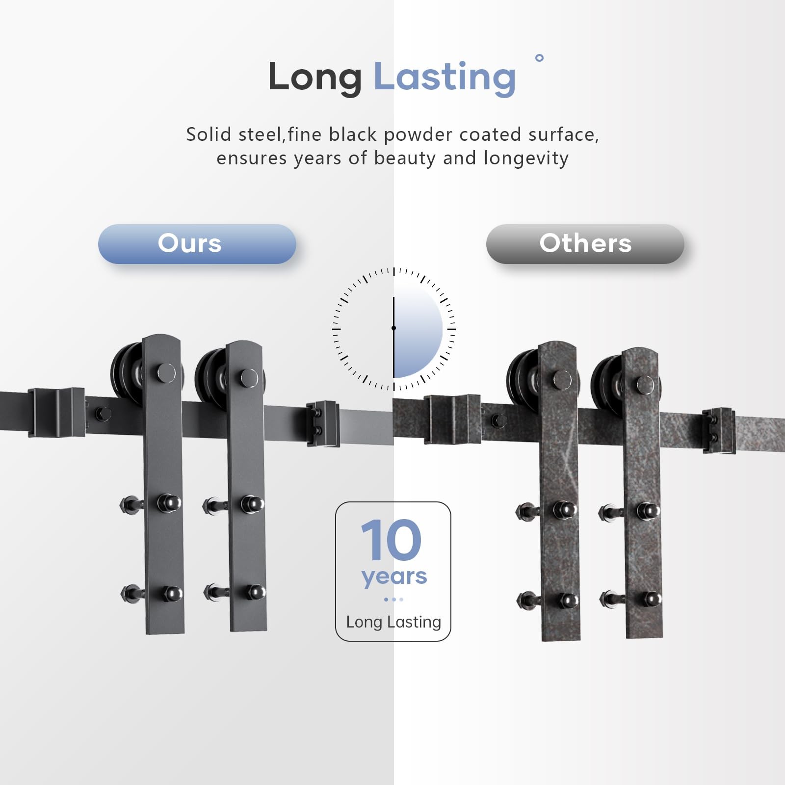 is a company specializing in barn door products.We have advanced production technology and an excellent after-sales service team.We are committed to providing customers with better products and service. High Quality:Steel,fine black powder coated surface,anti-corrosion ensures years of beauty and longevity.Slide Like Butter ,Ball bearing roller slide smoothly and quietly,Tested Beyond 100,000 Rolls.All items have been multiple inspected before on market. Widely Apply:Our hardware suitable for both modern and rustic style,you can apply for aisle,garage,kitchen,bedroom and so on. Reminds:Fit up to 84" Wide Door;Fit Door Thickness 1-3/8" ~ 1-3/4"(35~45mm);Door Weight Capacity 250lbs.Package Includes:(3)3.5ft Rail,(11)Spacer,(2) Rollers,(2)Door Stoppers,(1) Floor Guide.NOT INCLUDE DOOR Easy Install:We provide step-by-step graphic & text installation parsing manual,you can also get soft online copy and professional installation guide from our online service. 24 Hours Stand By:specialize in sliding door and hardware many years,if there anything missed or broken,pls let us know,we are whole day online to solve your problem.