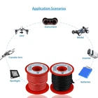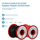High Quality Ultra Flexible Soft Silicone Rubber Copper Wire!Super Low Impedance,Highly Efficient! High strand count copper core,14 AWG silicone stranded wire has 400 strands 0.08 mm tinned copper wire,the copper strands are tinned,protecting them from corrosion and making it easier to solder. They are constructed with premium silicone rubber insulation.High temperature resistance 200 degree C,Low temperature resistance,in extreme cold -60 degree C.Voltage: 600 volts.Outside diameter 3.5 mm,tolerance +/- 0.1 mm. 14 gauge silicone wire spool: 2 colors,red and black,each color 40 ft,total 80 feet. silicone wire are widely used for model planes,model cars,model ships,lamps,household appliances,heating appliances,meters,instruments,motor and digital fields.