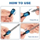 Product D escription 14/28PCS 1/4" H ex H andle Q uick R elease K eychain S crewdriver D rill H older S et Product Characteristics High Q uality I ndustrial G rade M aterials: This extension rod is made of high quality aluminum alloy and is durable. Easy T o U se: The keychain features a flat, thick, rounded design that makes it easy to pick up and replace screwdriver bits with one hand. Smooth surface processing and key chain can avoid the accidental drop of tools, easy to work at altitude. The powerful ball lock can carry tools weighing around 500G. Easy T o C arry: Small and portable, easy to carry. The product comes with a chain link, which can be hung on the belt. The large diameter flat ring is easy to install on the chain link. You can use your favorite chain keychain according to your needs. Strong C ompatibility: Expand a variety of screwdriver bits, screwdriver bit conversion purpose universal 1/4" hex shank head, suitable for most electric drives, hand-held drives and screwdriver bits. It is suitable for the connection of screwdriver drill, screwdriver, batch and so on. Product Specification Status: 100% Brand New Material: Aluminum A lloy Aperture: 1/4" (6.35mm) Quantity: 12PCS Package Included 12/24 PCS S crewdriver E xtension R od 2/4PCS K ey C hain Attention P lease 1. Please allow manual measurement error of 1-5mm. Make sure you don't mind before you buy. 2. Due to lighting effects, brightness contrast Settings of the display, etc., there may be some slight differences in the hue of the picture and the actual item, please make sure you don't mind.