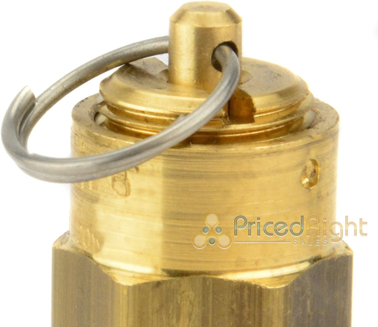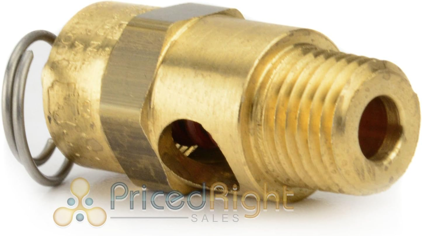 1/4" male NPT 200 PSI Industrial air compressor / tank pressure safety relief valve. Also known as a "Pop Off" or "Blow Off" valve. This relief valve is manufactured in the United States and is stamped with "UV" & "NB" symbols. The relief pressure of this valve is set at 70 PSI and is accurate within + or - 3% of the set pressure. Features a silicone rubber soft seat relief valve to prevent leaks This ASME soft seat safety relief valve, also known as a "pressure relief valve" or "pop off valve" is a standard safety valve for small air compressor systems and related applications. Even though the size is compact, the flow capacities are high. A resilient silicone rubber pad insures valve is bubble tight to within 10% of set pressure. All brass construction with zinc plated music wire spring. Stamped with "UV" and "NB" symbols. Pressure tolerance + - 3% of set pressure. Maximum temperature 250 degrees farenheit.