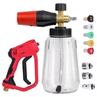 Wash Gun +5 Nozzle+Extension rod Descriptions: 【High-grade Material】 The gun body is made of engineering plastics. The internal structure is stainless steel. High-pressure washer gun nozzle extensions with 1/4'' standard quick disconnects can be used with any accessory with a 1/4'' plug. Such as nozzles, foam cannons, water brooms, swivel joints, sump cleaners, surface cleaners. Comfortable handle is designed for easy maneuverability. 【Professional Cleaner Set】 High Pressure Washer Trigger Spray Guns and 5 Spray Nozzles Tips.This high pressure washer gun with ergonomic design,more convenient and comfortable to use. 【Multiple Choices】 The 9" Pressure Washer Extension Rod changes the length of the pressure washer lance to 22" and 36".Different angles spray nozzle tips meet your need i 1/4" Foam Cannon & 4000PSI High Pressure Car Power Washer Gun Spray Wand Lance Wash Gun +5 Nozzle+Extension rod D escriptions: 【 High-grade Material】 The gun body is made of engineering plastics. The internal structure is stainless steel. High-pressure washer gun nozzle extensions with 1/4'' standard quick disconnects can be used with any accessory with a 1/4'' plug. Such as nozzles, foam cannons, water brooms, swivel joints, sump cleaners, surface cleaners. Comfortable handle is designed for easy maneuverability. 【 Professional Cleaner Set】 High Pressure Washer Trigger Spray Guns and 5 Spray Nozzles Tips.This high pressure washer gun with ergonomic design,more convenient and comfortable to use. 【 Multiple Choices】 The 9" Pressure Washer Extension Rod changes the length of the pressure washer lance to 22" and 36".Different angles spray nozzle tips meet your need in different situations, such as watering flowers and plants, washing car, washing fence, washing roof, and allows you to clean hard-to-reach areas quickly and easily. 【 Easy To Use】 Comfortable handle and safety trigger lock are designed for easier operation.Such as watering flowers or plants, washing car, fence or roof. Specification: Material: Brass + Engineer Plastic + Stainless Steel Color: Black and red Max Pressure: 4000PSI (280 Bar) Max. Temperature: 60℃ (Cold water use only) Lance to Nozzle Connection: 1/4" Quick Coupling 3-in-1 Gun Length (Adjustable): 36in, 22in, 9in Package List: 1 * 4000Psi high pressure washer gun handle 2 * Power Washer Wand 1 * M22-15mm Fitting (compatible with Sun Joe,AR Blue,Stanley,Campbell,MI-T-M,Cleanforce,Excell,Simoniz power washer.) 1 * M22-14mm Fitting (compatible with Generac,Simpson,Briggs Stratton,craftsman,karcher,Ryobi pressure washer.) 1 * G3/8"Fitting 1 * 1/4"Quick Connerctor 5 * Pressure Washer Nozzles Note: Not Fit Garden Hose or Water Hose or Your Faucet Directly!!Power washer gun is designed for gas and electric pressure washer. Snow Foam Bottle Features 【 BIG MOUTH FOAM CANNON 】: Our car soap foam gun simplifies the process of washing your car by producing a thick and luxurious foam. Its easy-to-pour bottle design ensures that you won't waste any soap liquid. 【 ADJUSTABLE NOZZLE UPGRADE DESIGN 】: To achieve the thickest foam mixture, simply turn the top knob in a right (-) direction. This knob controls both the amount of water used and the overall thickness of the foam. Due to the foam gun's design, you'll be able to produce a thick, high-quality foam that is perfect for washing your car or other vehicles. 【 HIGH QUALITY 】: The adjustable nozzle is constructed with a heavy-duty brass core and stainless steel, which improves the sealing of the joint effectively. our car wash foam gun can handle a maximum working pressure of3800 PSI. The knob can be adjusted to achieve the desired foam level, and the adjustable nozzle can be modified to change the spray width and angle as necessary. 【 EASY TO USE 】: This snow foam cannon is very easy to use. It comes with 1/4 inch quick connect accessories and an upgraded filter block design that provides maximum protection against damage from foam or water particles while being used. The 1/4 quick coupling allows the cannon to be securely attached to your pressure washer gun. Additionally, the adjustable foam concentration and spray angle help to improve the foam coverage and cleaning effectiveness. 【 MULTIPLE USE PRESSURE WASHER FOAM CANNON 】: Our foam sprayer is compatible with most pressure washers and can be used for a variety of applications, including washing cars, bikes, motorcycles, floors, windows, driveways, roofs, and siding. It's great for removing dust and dirt from your vehicle, including even the smallest cracks and crevices. Package includes: 1x Soap Foam Cannons Payment Shipping Return Contact us About us Payment 1.Paypal, Credit Card, G Pay etc, many payment way is accepted. 2.Please be sure your shipping address is correct before make a payment. Shipping 1.We are shipping from multiple warehouses (Houston, Texas/ Corona, California) , please note before placing an order 2.We will ship out the item within 1-3 business days after comfirming the payment, appreciate your patience. 3.If the items are broken on the way( we will check the orders clearly before we sent them ),please contact us in 3 days you received it. We will send you a new one or refund your payment. Return 1.We stand behind every buyer.Items can be returned for exchange or refund within 30 days. 2.Please contact us when you have any confusion of our item, we will solve the trouble for you as soon as possible. Contact us 1.This is professional Seller.We will reply your message within 24 hours. 2.Please contact us whenever you have any question about the item. We will deal with it as soon as possible. 3. If you are unhappy with the item or our service,please Contact Us before leave feedback,just give me a chance,thank you! About us 1. Unless specified otherwise, all our products are IN STOCK and are shipped from Local warehouse - Not Overseas! 2. We provide a 30 day Satisfaction Guarantee or your money back (provided items are in the sam