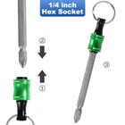 Product D escription 28 PCS 1/4" H ex H andle Q uick R elease K eychain S crewdriver D rill H older S et Product Characteristics High Q uality I ndustrial G rade M aterials: This extension rod is made of high quality aluminum alloy and is durable. Easy T o U se: The keychain features a flat, thick, rounded design that makes it easy to pick up and replace screwdriver bits with one hand. Smooth surface processing and key chain can avoid the accidental drop of tools, easy to work at altitude. The powerful ball lock can carry tools weighing around 500G. Easy T o C arry: Small and portable, easy to carry. The product comes with a chain link, which can be hung on the belt. The large diameter flat ring is easy to install on the chain link. You can use your favorite chain keychain according to your needs. Strong C ompatibility: Expand a variety of screwdriver bits, screwdriver bit conversion purpose universal 1/4" hex shank head, suitable for most electric drives, hand-held drives and screwdriver bits. It is suitable for the connection of screwdriver drill, screwdriver, batch and so on. Product Specification Status: 100% Brand New Material: Aluminum A lloy Aperture: 1/4" (6.35mm) Number O f S tent: 24 PCS Number O f K eychain: 4 PCS Package Included 24 PCS S crewdriver E xtension R od 4 PCS K ey C hain Attention P lease 1. Please allow manual measurement error of 1-5mm. Make sure you don't mind before you buy. 2. Due to lighting effects, brightness contrast Settings of the display, etc., there may be some slight differences in the hue of the picture and the actual item, please make sure you don't mind.