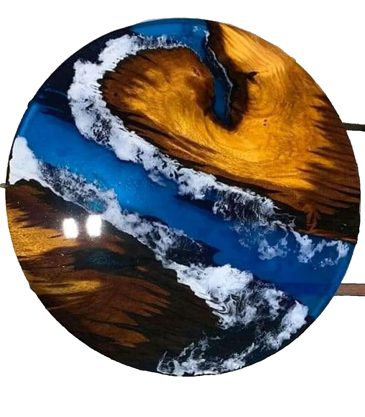 Table Size : 14"x14" Inches Our epoxy tables are custom-made, and we strive to use the same type of wood as depicted in our advertising pictures. However, it is not always possible to find an exact match, which may result in slight variations in the epoxy color and wood grain pattern. It's important to keep in mind that the table you receive may not be an exact replica of the advertising picture. We ensure that our clients are informed of every step of the process, from the selection of the wood to the final finish of the table. We keep our clients up-to-date throughout the process to ensure transparency and avoid any misunderstandings. Additionally, our price includes air delivery right to your doorstep via DHL/Fedex/UPS and insurance protection. Please note that you may be responsible for paying any applicable tax and duty on delivery. If you have any concerns or doubts, we highly recommend addressing them before making a purchase. Clearing any doubts beforehand will help avoid any issues and ensure a smooth buying process. It's important to note that any accessories depicted in the advertising images, such as knives, chairs, or lighting, are not included with the product and are only used for photography purposes. Additionally, please keep in mind that the price of the product does not include any type of legs. If you would like legs included, we can provide them for an additional cost. We recommend addressing any questions or concerns before making a purchase to avoid any misunderstandings. Made To Order....