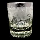 This 14 oz Victorian crystal whisky glass tumbler from 1850 features a round shape with a fluted base. It is etched and engraved with a beautiful vines & fruit pattern, showcasing a vintage style typical of the Victorian era. You should take care of this exquisite piece of barware and only hand wash it. It is a stunning addition to any glassware collection, perfect for enjoying cold beverages in a sophisticated manner. This would make an excellent gift for someone who enjoys whisky or other sipping liquor especially for someone who enjoys history. This glass just exudes quality.