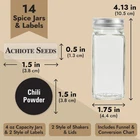 14 Pcs Talented Kitchen Spice Jars Set with 269 Labels, Empty Silver Product Details Product Dimensions: 1.75"L x 1.75"W x 4.13"H Recommended Uses For Product: Spices Special Feature: Airtight Container Shape: Square Closure Type: Screw Is Dishwasher Safe: Yes Item Package Quantity: 12 Item Weight: 3.66 Pounds Product Care Instructions: Dishwasher Safe Item Volume: 118 Milliliters Is Microwaveable: Yes Manufacturer: Talented Kitchen Part Number: 43235-54404 Item Weight: 3.66 pounds Item model number: 8541981661 Is Discontinued By Manufacturer: No Style: Round,Magnetic Finish: Brushed Shape: square Number Of Pieces: 4 Special Features: Airtight Batteries Included?: No Batteries Required?: No Number of Sets: 2 Brand: Talented Kitchen Color: Silver Material: Vinyl,Glass,Metal Material Feature: Dishwasher Safe, Microwave Safe Capacity: 4 ounces Spice Jars with Label: Our all-in-one set comes with square glass spice jars, silver metal caps, coarse shakers, sift-and-pour shakers, silicone funnel, conversion chart, and spice labels Refill and Reuse: The 4 oz kitchen spice jars with lids can be refilled with the collapsible silicone funnel; hand wash or place into the dishwasher and dry thoroughly before relabeling Stay Fresh: The screw-on silver metal lids have a liner for a secure, airtight seal; add spice gradually with the small sift holes, or dispense more seasoning at a time with the pour option 2 Label Styles: The 4 oz spice jars with lids come with 2 types of minimalist labels in 144-count and 125-count' printed on a transparent background that comes with assorted spice names Measurement Conversion Chart: You'll also receive a 5x7-inch kitchen measurement conversion chart magnet that includes the most common metric and imperial conversions