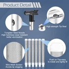 Airless Sprayer Tips Set: Package includes 6 x airless spray paint nozzles, 6 x paint spray filters and 2 x nozzle tip guards. Each nozzle comes with a nozzle seal and the nozzles fit most airless sprayers. Compatibility: These paint sprayer tips are with most airless paint sprayers, paint sprayer tips models: 109, 211, 315, 417, 515, 623 corresponding nozzle diameters are 0.009'', 0.011'', 0.015'', 0.017'', 0.023'', and the spray range is 2 to 14 inches. Good Quality: The paint sprayer tip and nozzle tip guard are made of hard metal and plastic, sturdy and not easily deformed. The total length of the sprayer filter is about 3.94'' / 10 cm, the mesh is uniform, easy to clean, just rotate the nozzle to clean. Easy to Install: Airless sprayer nozzles are easy to use and require no additional tools; install the tip seal onto the nozzle, then insert the tip seal into the guard base and rotate to complete the installation. Widely Application: There are a variety of spray tips models to choose from to meet your different needs. The airless paint spray nozzles are suitable for paint, furniture, fencing, home decoration, industrial fine paint and more, it is a practical and useful tool.