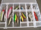 Here is a FLW plastic case with 14 Rapala baits, most of these look unused. You get everything in the picture. Shipping is 8.00 and I will always buy back anything you`re not happy with.