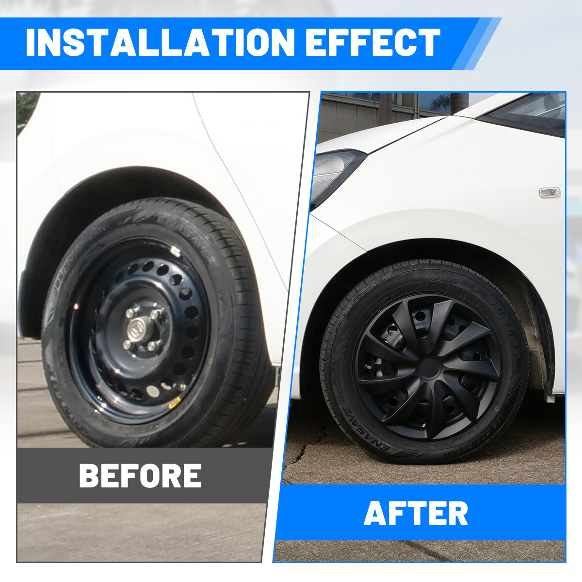 4PCS 13-Inch Black Matte Wheel Covers for R13 Tires & Steel Rims