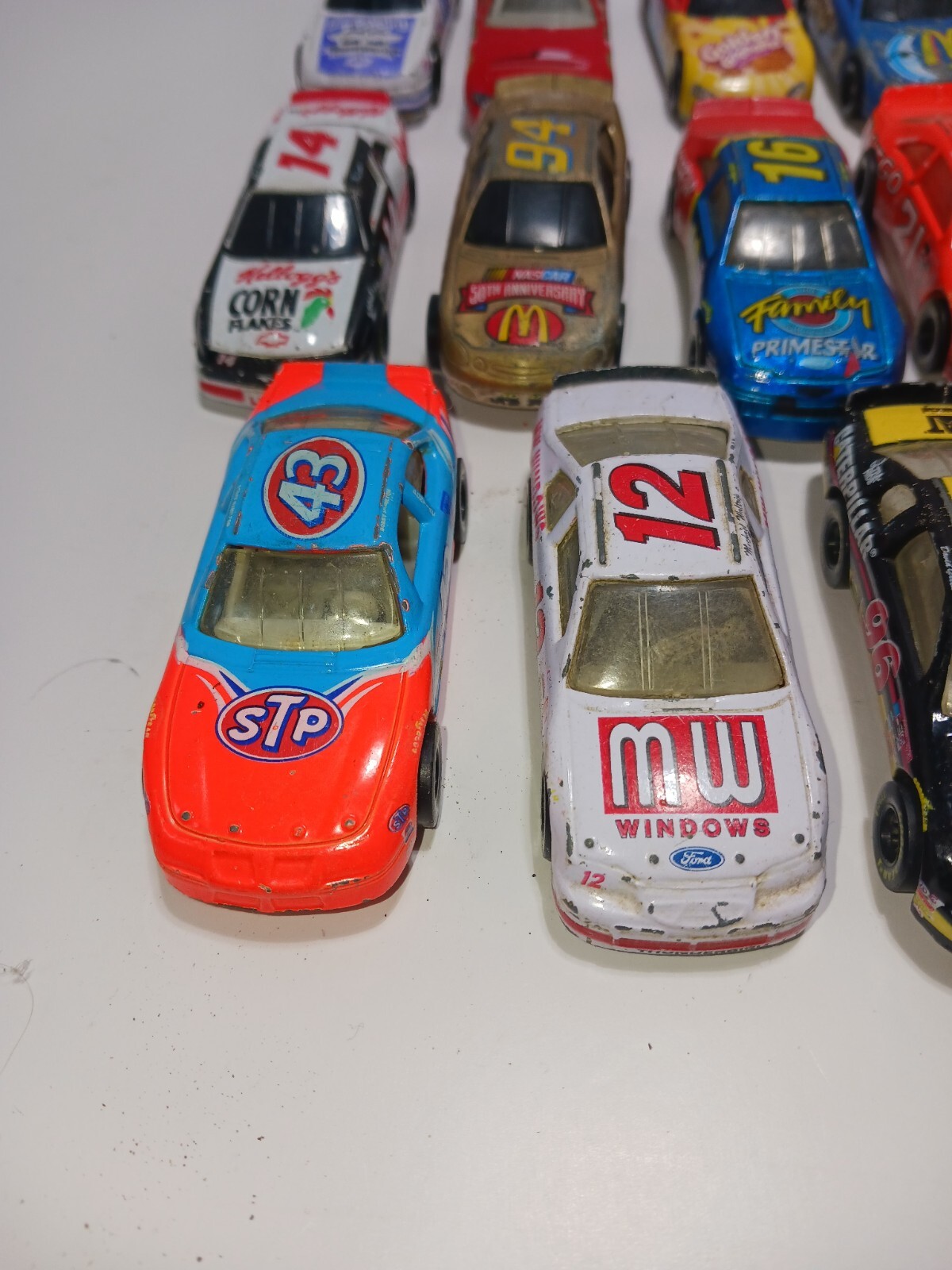 Dive into the world of NASCAR with this diverse lot of 14 vintage 1:64 scale die-cast cars, featuring renowned drivers like Earnhardt, Musgrave, Waltrip, Petty and Gordon. Each meticulously detailed vehicle is a replica of its real-life counterpart, constructed from high-quality diecast material, promising durability and a premium feel. Collectors and racing enthusiasts will appreciate the variety of brands included in this set, as well as the intricate design that Lionel is known for. Whether for display or play, these cars celebrate the legacy of NASCAR and are a must-have for fans of the sport. Embrace the thrill of the race with these scaled-down treasures from the world of motorsport.
