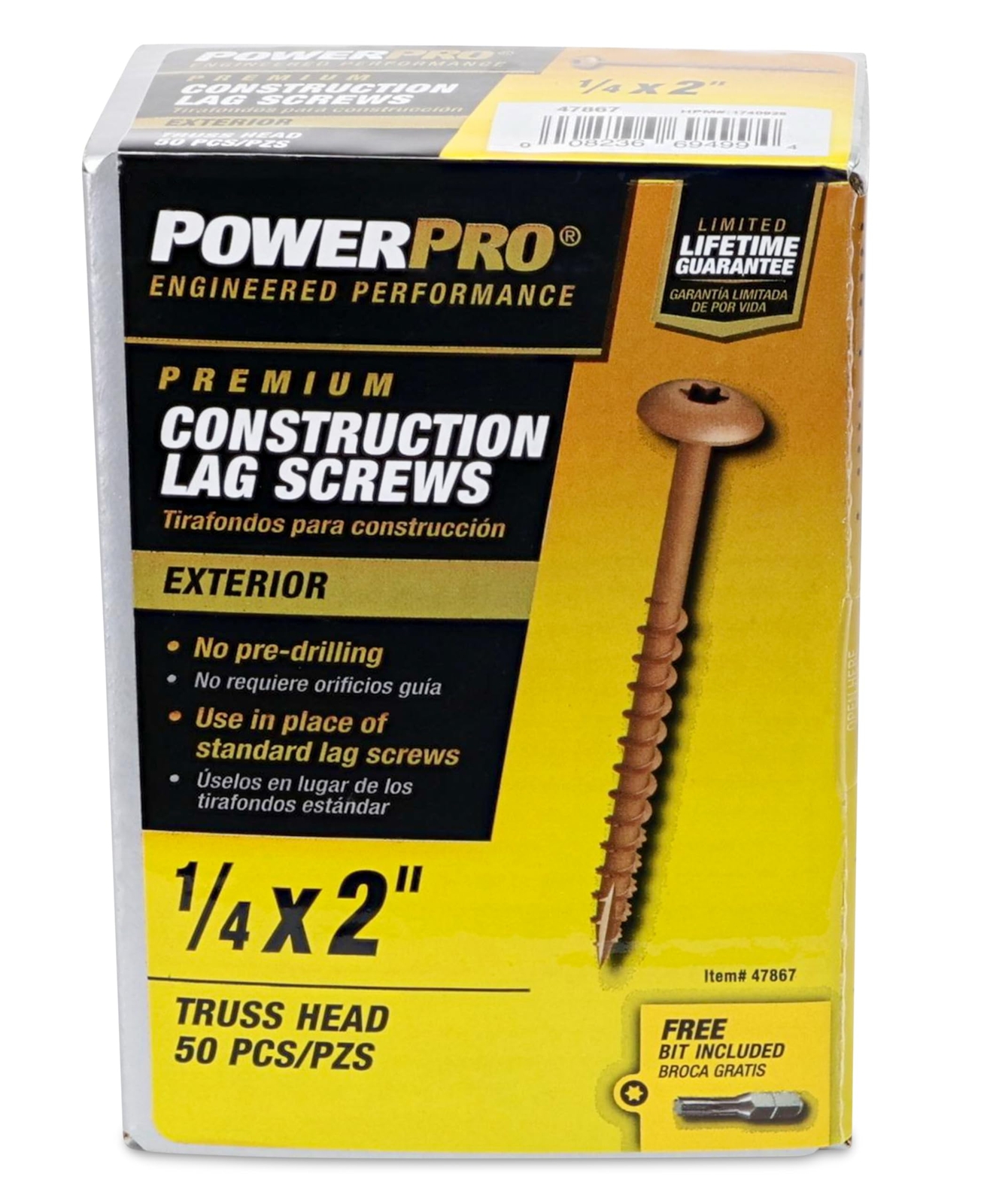 Lag Screws, 1/4" x 2", Star Drive Construction Lag Screws, Rust Resistant, Ceram Unique Design: Designed for heavy-duty applications and features a reinforced neck, aggressive thread design, and type 17 cut point Star Drive, Truss Head: Eliminate cam-out for a smooth, effortless drive every time Best-In-Class Corrosion Resistance: Bronze ceramic coat exceeds 1,000 hour salt spray test under ASTM B128 Engineered for the Outdoors: Common applications include decks, stairs, playsets, and many other outdoor wood projects Recommended Use: For structural or outdoor projects, requiring high strength and durability, construction screws are the best choice. Specifications: 250 pieces, 1/4"-20 x 2" Construction Lag Screws, T25 Star/Torx Drive Bit Included. Safe for use in place of standard lag screws Limited Warranty: Backed by Hillman's unparalleled customer service that goes above and beyond to ensure your satisfaction. Parts carry a limited warranty against rust & corrosion Shipping We offer FREE shipping on all orders! We ship within Three business days of payment, usually sooner. We use a selection of shipping services such as UPS, FedEx, USPS etc. We only ship to the lower 48 states, no APO/FPO addresses or PO Boxes allowed. Local pickups and combined shipping options are not provided at this time. Return You can return a product for up to 30 days from the date you purchased it. Any product you return must be in the same condition you received it and in the original packaging. Please keep the receipt. Payment We accept payment by any of the following methods: PayPal Please pay as soon as possible after winning an auction, as that will allow us to post your item to you sooner! Feedback Customer satisfaction is very important to us. If you have any problem with your order, please contact us and we will do our best to make you satisfied. Contact Us If you have any queries, please contact us via ebay. We usually respond within 24 hours on weekdays. Please visit our eBay store to check out other items for sale! Thank you for shopping at our store.