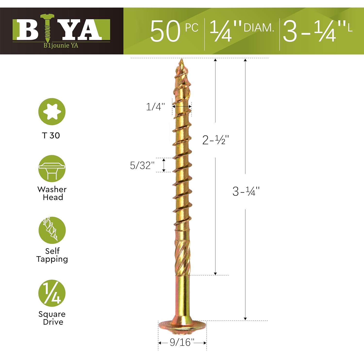 Store New Arrivals Add to Favorite View Feedback Contact Lag Screws,1/4" X 3-1/4" Structural Screws, 50Pcs Construction Lag Screws Description Color Yellow Material Alloy Steel Drive System Torx Thread Size 1/4 Head Style Washer Head Manufacturer B1jounie YA Exterior Finish Zinc Package Dimensions 4.8 x 3.66 x 1.65 inches; 1.21 Pounds Size 1/4" x 3-1/4" - 50 SCREW COUNT 【Quantity and Size】-Type: 1/4" Torx/Star Round Washer Lag Screws; Length: 3-1/4"; Quantity: 50PCS; Use T30 Torx/Star Bit; We have checked all lag screws, and the quantity of wood screws you will receive upon purchase will not be insufficient. 【Rugged and Durable】-The interior construction lag screws replace traditional lag screws or carriage bolts . Heat treated grade 5 durability, subjecting the torx screws to heat treating gives greater strength and reduces breakage. The lag screws modified truss washer head design offers a contemporary and sleek finished installation. Excellent draw down strength without the need for a separate washer delivers superior clamping ability and a easier installation. 【Wide Range of Applications】- These screws are yellow zinc plated for improved durability and have a heavy - duty shank for torsional strength. They also have an asymmetrical screw thread for better pull - out strength and a sharp point for a quick start. Common applications include decks, stairs, playsets, and many other outdoor wood projects. 【Convenient Package】-Lag screws packed according to the size,it is efficient to find screws size required. Excellent materials for polypropylene boxes that can be reused as storage boxes. Screws matching size is suitable for daily use. 【Worry-Free Warranty & Service】-The lag screws are packaged in a durable eco-friendly plastic box, which is very convenient to manage and store, and easy to transport and carry. B1jounie YA focus on customer satisfaction, If you have any problems or questions about the wood screws, you can contact us by email, we will solve all your problems as soon as possible. Product Description The video showcases the product in use. The video guides you through product setup. The video compares multiple products. The video shows the product being unpacked. " data-position="triggerHorizontal"> 1/4" Construction Lag Screws High performance exterior coated Construction Lag Wood Screws are an excellent multipurpose fastener for professional operations & demanding industries. Construction applications include: decking, fencing, roofing, framing, timber frame, post & beam, etc. Construction Lag Screws far exceed standard lag screws in shear strength, compression forces and ease of installation. Our construction lag screws are strong—can be removed and reused. Popular items from B1jounie YA Size #8 x 1/2,#8 x 5/8,#8 x 3/4,#8 x 1,#8 x 1-1/4,#8 x 1-1/2,#8 x 2 Size #8 x 1/2,#8 x 5/8,#8 x 3/4,#8 x 1,#8 x 1-1/4,#8 x 1-1/2,#8 x 2 Size #8 x 1/2,,#8 x 3/4,#8 x 1 Head Size Phillips Head Size Phillips Head Size Phillips Usage Household Appliances,Furniture,Woodworking Usage Household Appliances,Furniture,Woodworking Usage Household Appliances,Furniture,Woodworking Exterior Coated Zinc Exterior Coated Zinc Exterior Coated Zinc ABOUT US We offer the best prices around on high quality products. Our E-store includes media such as books, movies, music and games while offering electronics, toys, sporting apparel, clothing, tools, general home, garden items and more. SHIPPING We are always working hard to ensure your package arrives as soon as possible. Please understand that some factors like weather, high postal traffic, and the performance of shipping companies are outside of our control. We offer free shipping to the lower 48 states and ship within 2 business days of payment, usually sooner. We do not accept P.O. Boxes. Please provide a physical address. RETURNS We offer a 30-Day Return Policy on items which you are not completely satisfied with. You have the option for a full-refund or an exchange of the item. No returns are available on items shipped outside of the USA. PAYMENT We accept PayPal. CONTACT US This page content is yet to come Please ad us to your favorite seller and visit again later Thank You CUSTOMER SATISFACTION We try our very best to make sure every customer is completely satisfied. If there's a problem, message us! We're happy to help.