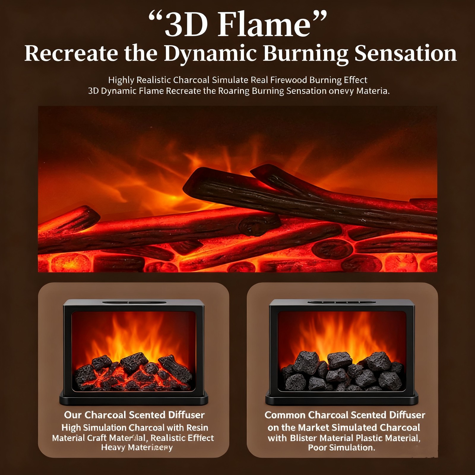 Fireplace Flame Humidifier Colorful Light Flame Essential Oil Diffuser Mute Work