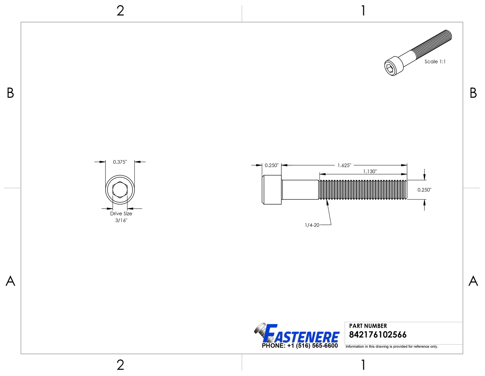 1/4-20 x 1-5/8" Socket Head Cap Screws Allen Hex Bolts Stainless Steel Qty 500 Socket Cap Screws are reliable and durable and are used in many applications. They are available in a variety of head styles and materials. With a high cylindrical head, socket cap head fasteners have a recessed driving area and offer high hold power at high torque levels. Hex socket drive systems are driven by hex wrenches or power tools with hexagonal bits. A threaded fastener's size name includes information about the major external diameter, followed by the threads per inch, which indicates if it is coarse or fine. Coarse threads are better when working with brittle materials; they are sturdier and are easier to thread and unthread compared to fine. Coarse threading also allows for thicker coatings and platings General Product Information Head Style : Socket Cap Drive Style : Allen Hex Key Drive Size : 3/16" Thread : 1/4-20 Length : 1-5/8" Quantity of Fasteners in Package : 500 Detailed Product Information: Head Diameter : 3/8" Head Height : 0.250" Thread Diameter : 0.250" Threads Per Inch (TPI) : 20 Coarse or Fine Thread : Coarse Thread Coverage : Partial Thread Thread Length : 1.130 Key Notes: Socket head cap screws are the best choice for applications with a limited space due to the internal hexagon slot that allows them to be used in locations where externally wrenched fasteners are not desireable; The head height of a socket head cap screw is equal to the diameter of the body Socket cap screws offer industrial reliability and safety making them the chosen fastener in critical vehicle applications machine tools earth moving and mining equipment due to their superior strength and advanced design Compared to ordinary fasteners these socket head cap screws can achieve the same clamping force in a joint with fewer used allowing for less holes to be drilled and tapped which provides a weight reduction as well a smaller foot print and require much less installation effort thus saving valuable time Hex shaped recess in the head provides a driving surface that has increased protection against damage and has six sides of contact surface for more torque that professionals choose to use over hex bolts due to quality issues or repeated stripping with hex head cap screws Fastenere socket head cap screws are made from a grade 18-8 stainless steel which offers an excellent resistance to rust and corrosion from acids salt solutions and the atmosphere making for a superior product that will not succumb to scaling or rust while also providing good shock and impact resistance in extreme temperatures Shipping: All orders placed before 3:30 pm EST Will Ship Same Day Tracking is provided on ALL Orders Priority Mail Shipping service is offered at a discount of only $3.95 UPS Ground UPS Next Day Air is available, Please inquire for pricing Returns : ALL returns are accepted if returned within 60 days. Money Back or exchange guaranteed. NO Restocking Fees. For YOU, we constantly strive to find ways of improving our performance.