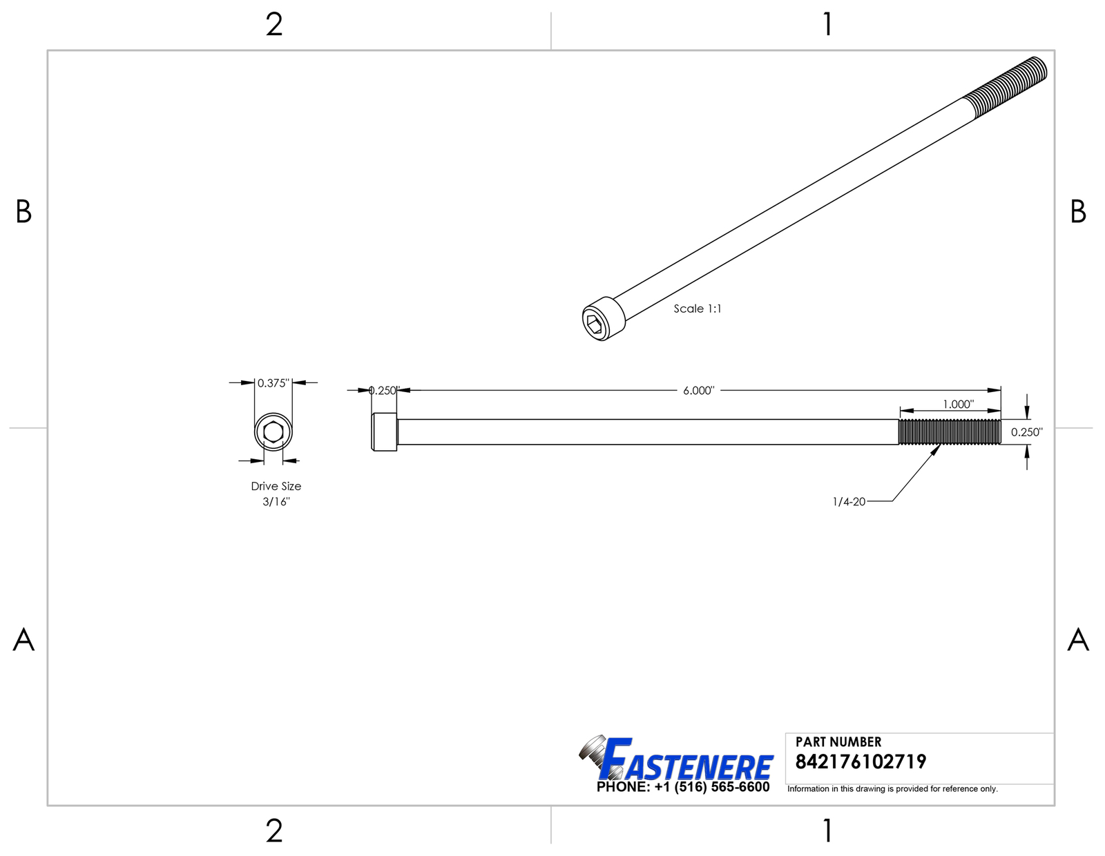 1/4-20 x 6" Socket Head Cap Screws Allen Hex Bolts Stainless Steel Qty 500 Socket Cap Screws are reliable and durable and are used in many applications. They are available in a variety of head styles and materials. With a high cylindrical head, socket cap head fasteners have a recessed driving area and offer high hold power at high torque levels. Hex socket drive systems are driven by hex wrenches or power tools with hexagonal bits. A threaded fastener's size name includes information about the major external diameter, followed by the threads per inch, which indicates if it is coarse or fine. Coarse threads are better when working with brittle materials; they are sturdier and are easier to thread and unthread compared to fine. Coarse threading also allows for thicker coatings and platings General Product Information Head Style : Socket Cap Drive Style : Allen Hex Key Drive Size : 3/16" Thread : 1/4-20 Length : 6" Quantity of Fasteners in Package : 500 Detailed Product Information: Head Diameter : 3/8" Head Height : 0.250" Thread Diameter : 0.250" Threads Per Inch (TPI) : 20 Coarse or Fine Thread : Coarse Thread Coverage : Partial Thread Thread Length : 1.000 Key Notes: Socket head cap screws are the best choice for applications with a limited space due to the internal hexagon slot that allows them to be used in locations where externally wrenched fasteners are not desireable; The head height of a socket head cap screw is equal to the diameter of the body Socket cap screws offer industrial reliability and safety making them the chosen fastener in critical vehicle applications machine tools earth moving and mining equipment due to their superior strength and advanced design Compared to ordinary fasteners these socket head cap screws can achieve the same clamping force in a joint with fewer used allowing for less holes to be drilled and tapped which provides a weight reduction as well a smaller foot print and require much less installation effort thus saving valuable time Hex shaped recess in the head provides a driving surface that has increased protection against damage and has six sides of contact surface for more torque that professionals choose to use over hex bolts due to quality issues or repeated stripping with hex head cap screws Fastenere socket head cap screws are made from a grade 18-8 stainless steel which offers an excellent resistance to rust and corrosion from acids salt solutions and the atmosphere making for a superior product that will not succumb to scaling or rust while also providing good shock and impact resistance in extreme temperatures Shipping: All orders placed before 3:30 pm EST Will Ship Same Day Tracking is provided on ALL Orders Priority Mail Shipping service is offered at a discount of only $3.95 UPS Ground UPS Next Day Air is available, Please inquire for pricing Returns : ALL returns are accepted if returned within 60 days. Money Back or exchange guaranteed. NO Restocking Fees. For YOU, we constantly strive to find ways of improving our performance.