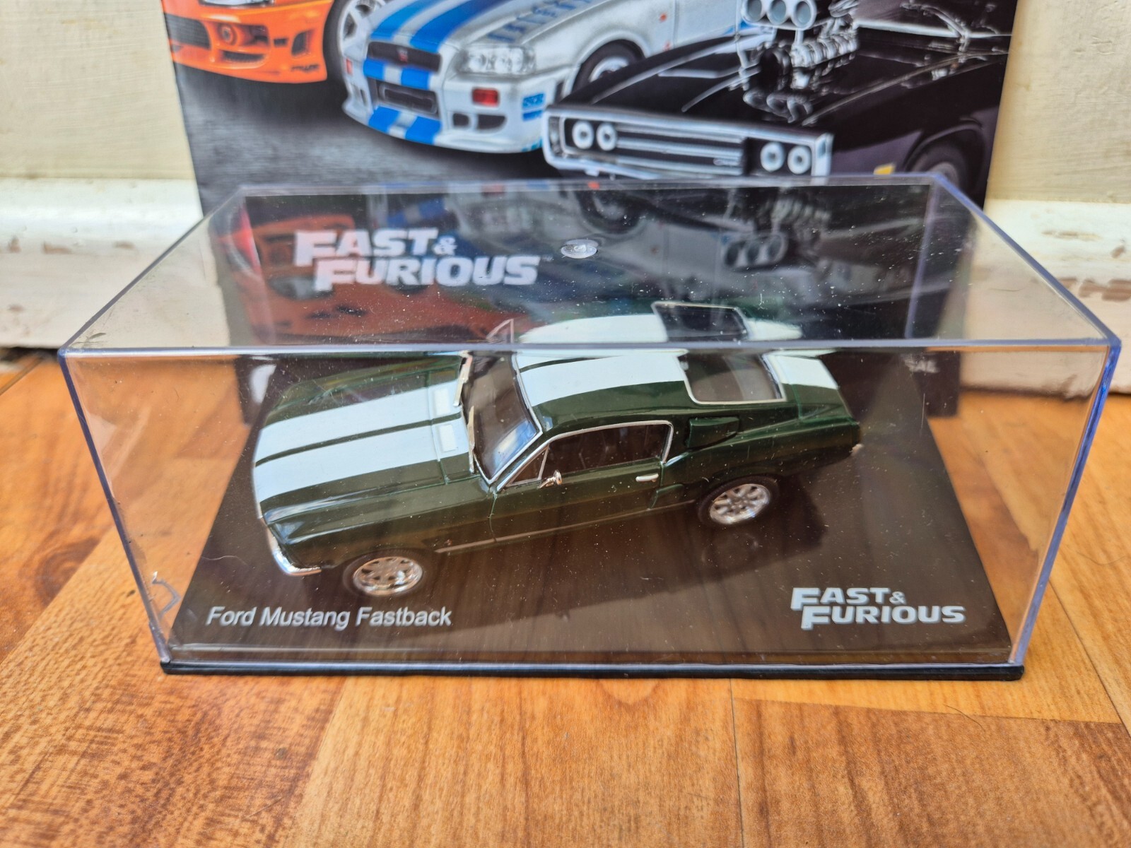 YOU ARE BUYING A FORD MUSTANG FASTBACK DIECAST MODEL CAR FROM THE FAST & FURIOUS CAR COLLECTION. GOOD CONDITION ON STAND WITH PLASTIC CASE. CASE HAS A FEW CRACKS. CAR IS EXCELLENT COMES WITH CORRESPONDING MAGAZINE AS RELEASED BY ALTAYA / FANHOME CAR LOOKS HIGHLY REALISTIC, PROFESSIONALLY SCULPTED. MOUNTED ON STAND WITH NAME OF CAR. THE MODEL HAS GREAT DETAIL VERY NICE MODEL 1/43 SCALE. APPROX 8CM LONG WITH ROLLING WHEELS DO NOT MISS OUT CHECK OUT THE OTHER ITEMS IN MY SHOP - AS HUGE POSTAGE DISCOUNTS ARE OFFERED FOR MULTIPLE BUYS