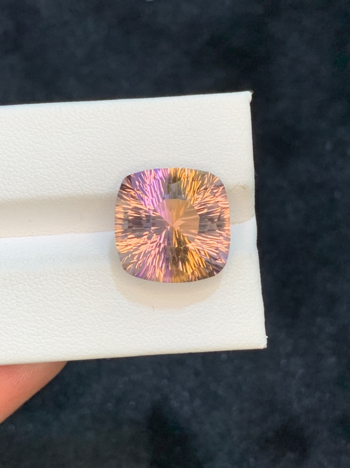 This product is a 14.48 carat natural Ametrine gemstone from Bolivia, featuring a transparent yellow purple color. The gemstone is cut to excellent grade and has a fancy shape. It is handmade and comes with a certification upon demand. The gemstone is sourced from Bolivia and is considered loupe clean in clarity grade. This gemstone is ideal for jewelry making and is available for wholesale purchase. Its unique color and origin make it a valuable addition to any collection of loose gemstones.