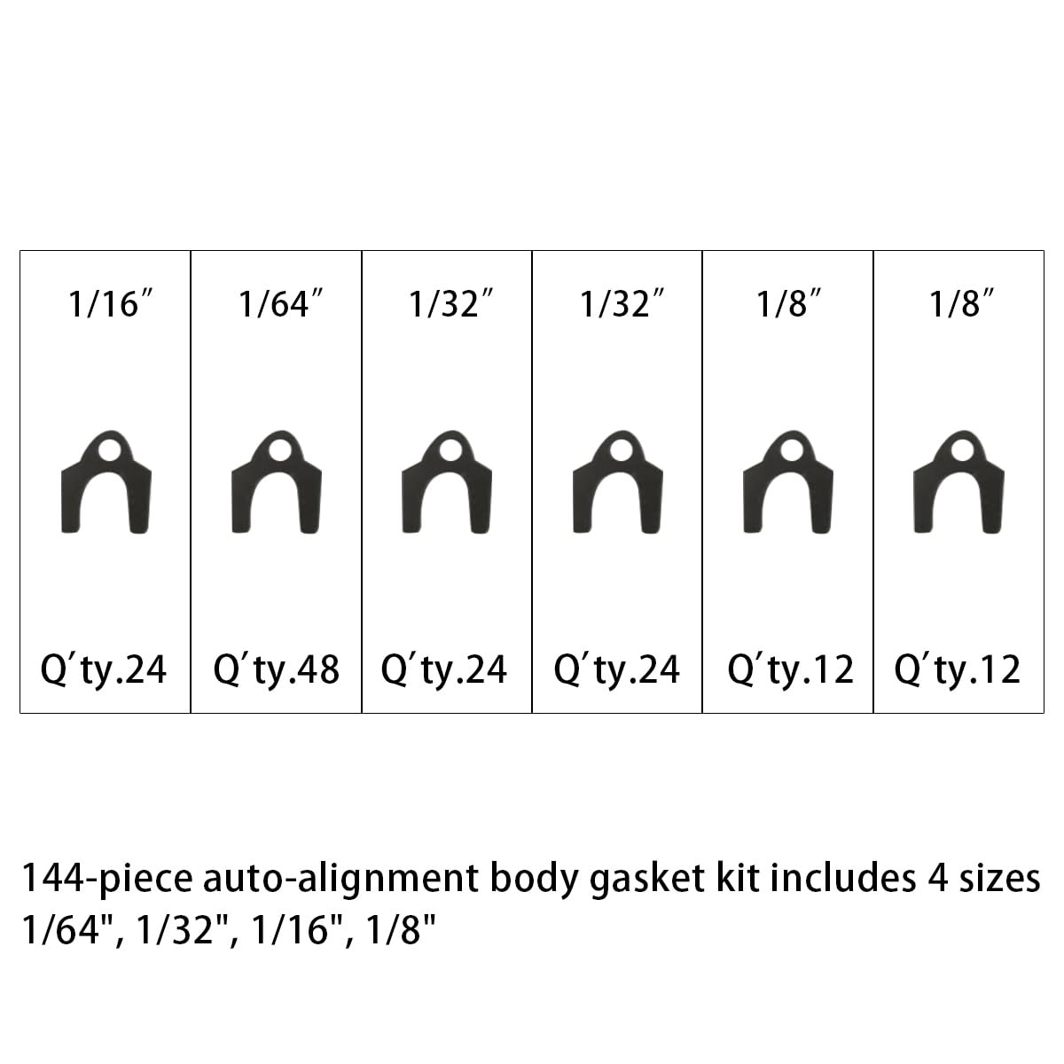 Specification: Material: Iron galvanized Size: 1/8", 1/16", 1/32", 1/64" Color: Silver Single Box Product Weight: About 850g Product Box Size: 8.66*4.41*1.18 inches Package Includes: 144* auto alignment body shims Details of Pieces: - 1/16" 24 pieces, 1/64" 48 pieces, 1/32" 48 pieces, 1/8" 24 pieces What is an alignment shim? - Alignment shims are widely used for space alignment, bearing adjustment and motor base alignment. They are available in various thicknesses and width x length sizes to suit any environment. 【High Quality Material】: Made of high quality galvanized steel material, our GM alignment body gaskets are corrosion and rust resistant, strong and durable, not easy to break or fade, and can be used for a long time. 【Adequate Quantity】: You will get 144Pcs tuning shims, the auto alignment body shim kit includes 4 sizes 1/64", 1/32", 1/16", 1/8" to fit different automotive applications. The various sizes and ample quantities will meet your diverse usage needs and are sufficient for your daily use or to share with others. 【Scope of Use】: Our universal body shims are used to adjust camber, camber and toe of body parts or front or rear wheels. In addition, there are enough wedges in the package for universal use in a variety of leveling and alignment projects. 【Convenient Packaging】: Our alignment shim kit comes with a convenient reusable and sealed 6 compartment box with the corresponding size and quantity clearly marked on the box, you can easily and quickly find the correct item, saving you time looking around for a specific size. Easy to and use. 【Must Have Goodies】: This slotted U-shaped alignment spacer simply inserts a solid alignment spacer between two parts or one part and the frame to create more separation and help align wheels or other suspension components. If you are a car enthusiast or professional mechanic, these auto body alignment spacers are ideal for you and we are sure you will need it.