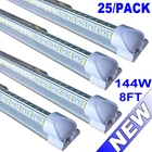 FAST DELIVERY - Ship from New Jersey or Los Angeles Warehouse via FedEx , 3-7 Days Delivered Your Door . SCIENTIFIC DESIGN - 8Ft LED Shop Lights Fixture is Made of 6500K Cold White SMD2835 LED Chip ,Plastic Clear Cover , Aluminum Bracket Housing ,and AC85-277V Constant Current Driver . It can work in -68F to 120F Temperature Conditions EASY INSTALLATION - The Integrated Tube Fixture Can be Install on Wall or Ceiling ,Easily Replace Traditional Fluorescent Tube Bulb . Plug and Play , Free Accessories (Power Cords, Connector , Extension Cords , Clip and Screw ) Come with Tube Lights Together WIDE APPLICATION - Linkable 8Ft Bulbs Widely Used in Garage Ceiling , Barbershop , Schools, Hospitals Basement , Factory Warehouses , Supermarkets Cooler Door , Offices, Shops,Hotels, etc 144w 8 foot led shop lights led Strip Lights 25PC Tube Light led hotel Lights FAST DELIVERY - Ship from New Jersey or Los Angeles Warehouse via FedEx , 3-7 Days Delivered Your Door . SCIENTIFIC DESIGN - 8Ft LED Shop Lights Fixture is Made of 6500K Cold White SMD2835 LED Chip ,Plastic Clear Cover , Aluminum Bracket Housing ,and AC85-277V Constant Current Driver . It can work in -68F to 120F Temperature Conditions EASY INSTALLATION - The Integrated Tube Fixture Can be Install on Wall or Ceiling ,Easily Replace Traditional Fluorescent Tube Bulb . Plug and Play , Free Accessories (Power Cords, Connector , Extension Cords , Clip and Screw ) Come with Tube Lights Together WIDE APPLICATION - Linkable 8Ft Bulbs Widely Used in Garage Ceiling , Barbershop , Schools, Hospitals Basement , Factory Warehouses , Supermarkets Cooler Door , Offices, Shops,Hotels, etc