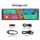 Specifications Screen size :14.5" TP Active Area :354.816(H)×99.792(V) AA Channel (Resolution) :80(H)x20(V) Display Resolution :2560RGB(H)×720(V) Active Area :354.816(H)×99.792(V) Screen Size : 14.5(Diagonal) Dot Pitch :0.0462RGB(H)x0.1386(V) Color Configuration : R.G.B. Stripe Note 1 Color Depth ;16.7M Colors Overall Dimension : 364(H)×113(V)×3.0(T) Note 2 LCM Luminance :350(typ) Display Mode : Normally Black (AHVA) Whether the display can be touched:YES Packaging: 1x display 1xHDMI cable 1x single-ended Type-C cable 1x double-ended Type-C cable 1x support