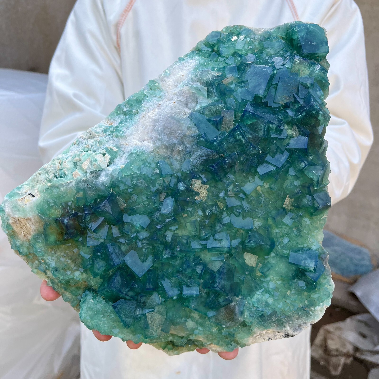 This stunning natural fluorite cluster is absolutely mesmerizing! The vibrant green hues and unique crystal formations make it a true showpiece. It's heavier than expected, with a solid, high-quality feel—definitely worth every penny. The seller provided accurate dimensions, so no surprises there. Perfect for collectors or anyone who loves healing crystals. Arrived well-packaged and exactly as pictured. Couldn’t be happier with this purchase!