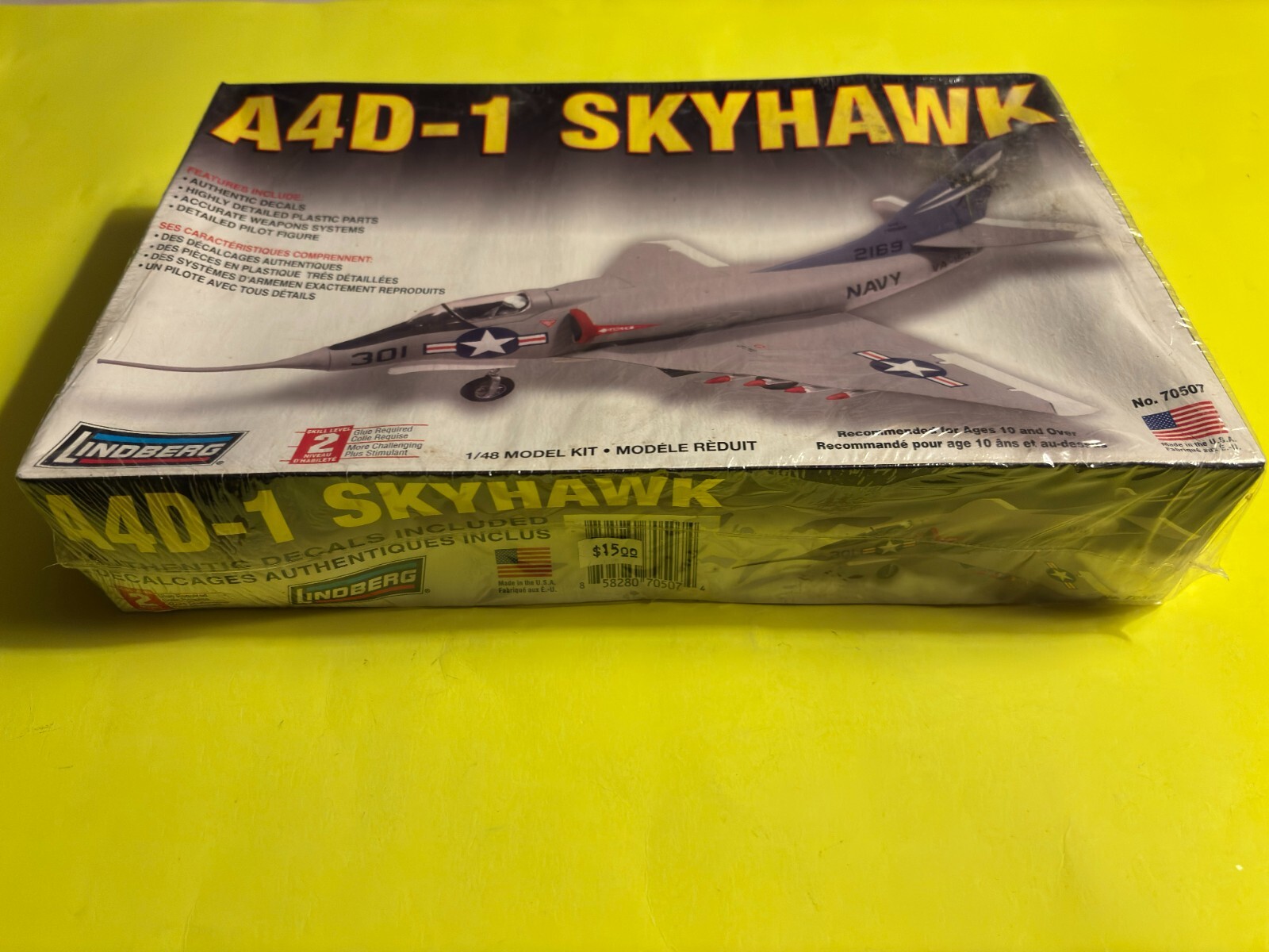 HERES A GREAT MODEL KIT FROM LINDBERG !! ITS THE A4D-1 SKYHAWK JET FIGHTER AIRPLANE IN 1/48 SCALE !! KIT IS BRAND NEW SEALED !! THE BOX LOOKS LIKE IT GOT SLIGHT WATER SAMAGE ON THE BACK-THATS WHY THE WRINKLE ... CHECK THE PICTURES WHAT YOU SEE IS WHAT YOULL GET !! .BUYER PAYS 13.50 FOR USPS SHIPPING IN THE USA ONLY!!TRANSACTION MUST BE COMPLETE AT AUCTION END.I ACCEPT PAYMENTS THROUGH EBAY ONLY!! THANKS FOR LOOKING!! I DO COMBINE SHIPPING SO PLEASE CHECK MY OTHER ITEMS!! IF YOU DONT LIKE MY PRICES MAKE ME AN OFFER!! THE WORST I CAN DO IS SAY NO