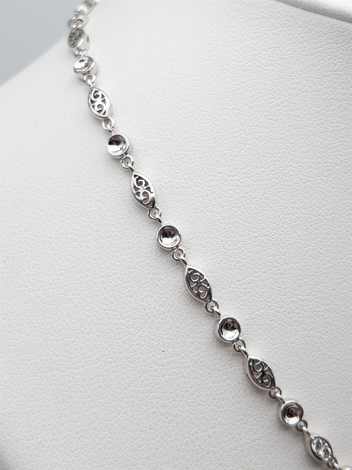 Description: Signed Gregg Ruthy dinner choker necklace. 15 inches and set with 2cts in VS G Natural Diamonds. Solid 18k White Gold and these drops all dangle. Stunning piece and retail $14850. This is a gorgeous necklace and rare find. HEAVY over 20 grams...get a steal. . Stone: Natural Diamonds Metal: 18k White Gold Length: 15 in Gram Weight: 20.2 Powered by SixBit's eCommerce Solution