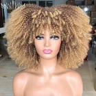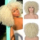 Home14-Inch Glueless Afro Kinky Curly Wig with Bangs for Cosplay