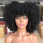 14-Inch Glueless Afro Kinky Curly Wig with Bangs for Cosplay